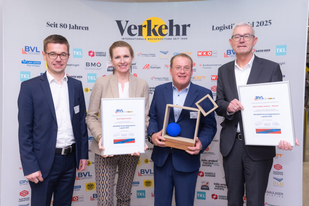 Zum vierten Mal wurde auch der Große Nachhaltigkeitspreis der BVL Österreich verliehen. Nominiert waren hofmann & neffe, Schachinger Logistik und Saint-Gobain Austria. Durchsetzen konnte sich Saint-Gobain mit seinem innovativen Closed-Loop-System für Gipskartonplatten. BVL-Präsident Roman Stiftner betonte in seiner Rede die zentrale Verantwortung jedes einzelnen Unternehmens, Nachhaltigkeit konsequent in der Logistikkette umzusetzen.