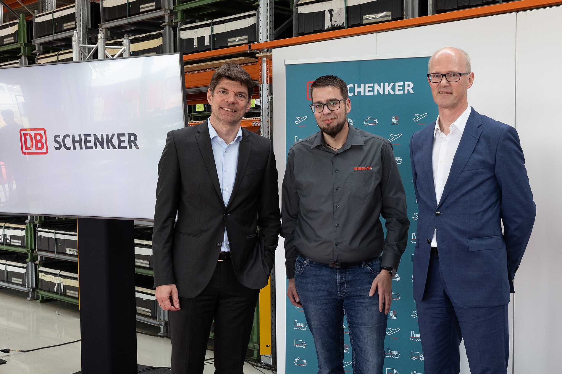 Alexander Winter (CEO von DB Schenker SEE, li.), Andreas Kerschner (Head of Contract Logistics, re.) und ein GSSA-Mitarbeiter, der zum Thema Gefahrgut referierte, bei der Eröffnung.