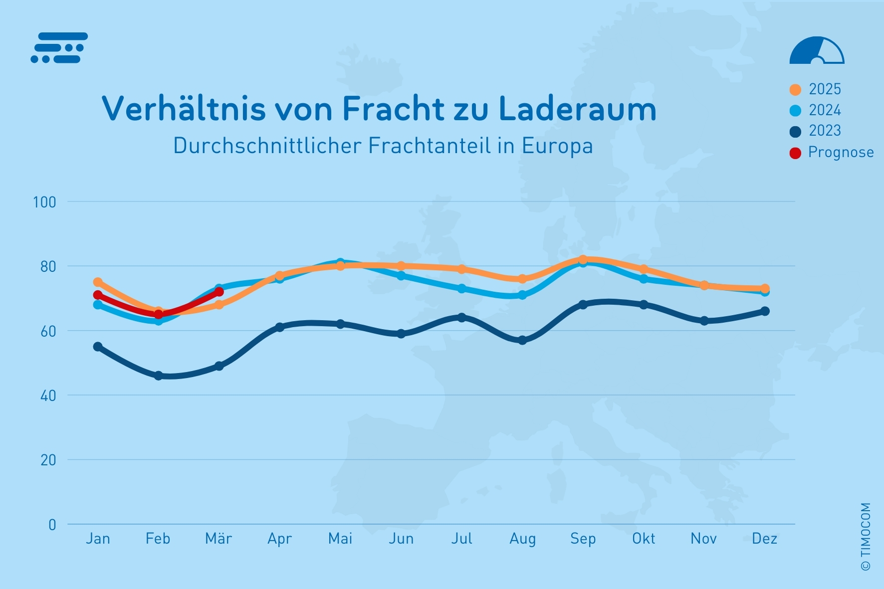 Für das erste Quartal 2026 rechnet TIMOCOM mit einem insgesamt stabilen, jedoch saisonal schwankenden Markt. Nach einem moderaten Rückgang im Januar wird im Februar das typische Saisontief erwartet, bevor sich der Markt im März wieder belebt.