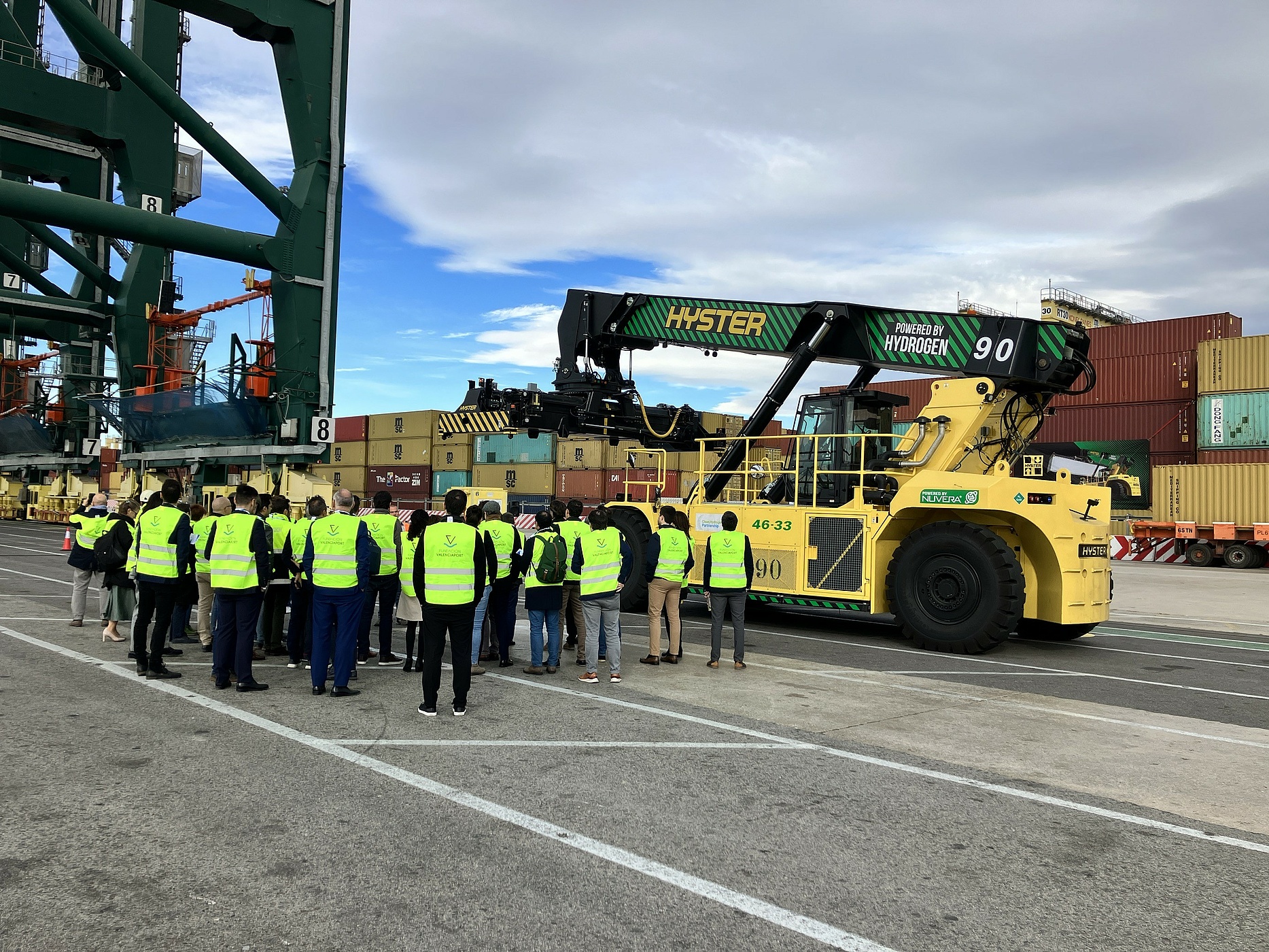 Hyster hat erstmals seinen Wasserstoff-Brennstoffzellen-ReachStacker der Öffentlichkeit im Hafen von Valencia im MSC-Terminal vorgeführt.